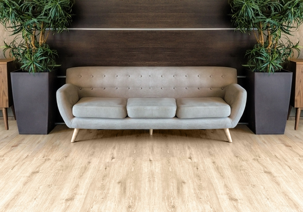 На фото угадывается знакомая структура дерева. Похожий внешний вид объединяет кварцвиниловое покрытие с натуральным дубом. Вот только у плитки нет типичных для дерева недостатков. Весь срок службы изделие сохраняет четкую фактуру и приятный цвет, поверхность остается целостной и после контакта с водой. ПВХ плитка невосприимчива к влаге, и это главный плюс.