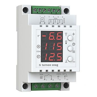 Как только показания датчика температуры воздуха попадают в диапазон таяния снега (настраивается), терморегулятор начинает проверять наличие осадков на поверхности датчика осадков. Только при оттепели и наличии снега система подогрева будет работать! Таким образом регулятор сэконимит до 80% электроэнергии по сравнению с регуляторами, которые работают только по датчику