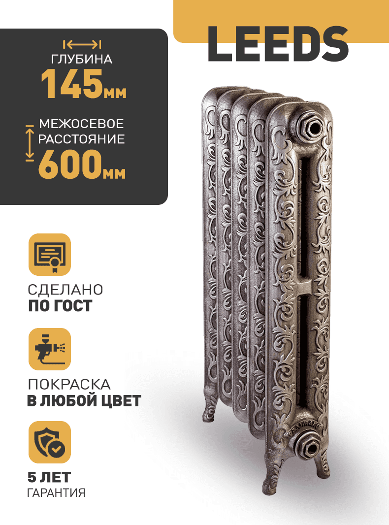 —Радиатор чугунный RETRO LEEDS 600/145 12 секций