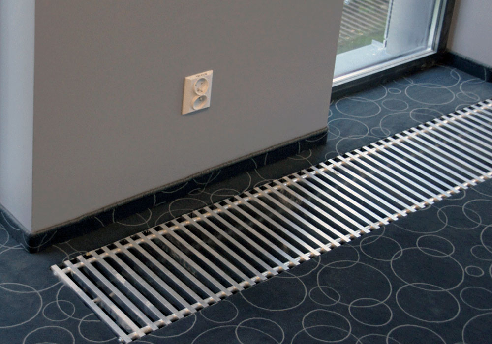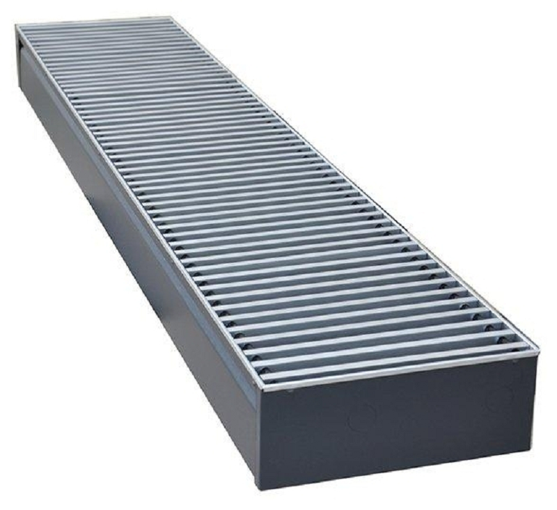 Это передовой внутрипольный конвектор, исполненный в эргономичном и прочном стальном коробе и отличающийся небольшой высотой, позволяющей размещать его на специальных объектах. Рассматриваемое устройство эффективно служит для обогрева помещений и помогает предотвратить ненужное запотевание больших окон в период зимних холодов. Основная конструкция остаётся скрытой, видна лишь декоративная решётка. Конвекторы имеют естественную конвекцию и выпускаются без вентилятора. Обеспечивают быстрый и эффективный обогрев помещения, создавая перед большими окнами и стеклянными стенами тепловые завесы от потоков холодного воздуха. В летний период конвекторы могут использоваться для лёгкого кондиционирования помещения. Компактные и эффективные встраиваемые в пол конвекторы с прочным медноалюминиевым теплообменником отличаются стабильностью в работе,
