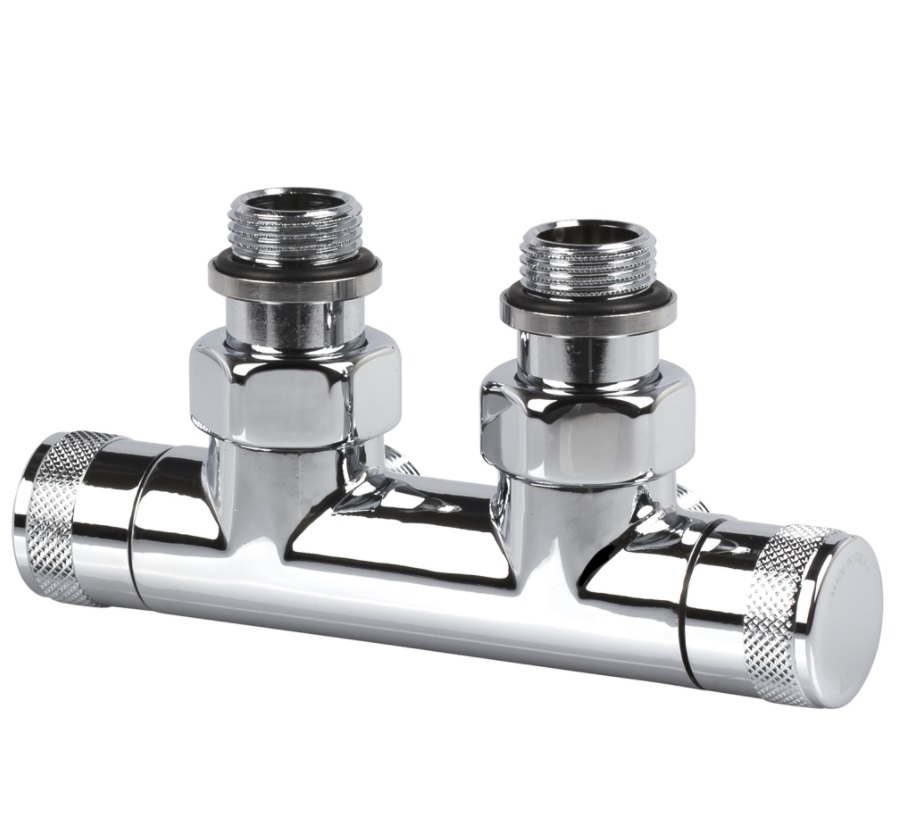 —Запорный узел TONDERA угловой хром левый, ручная регулировка + термовентиль