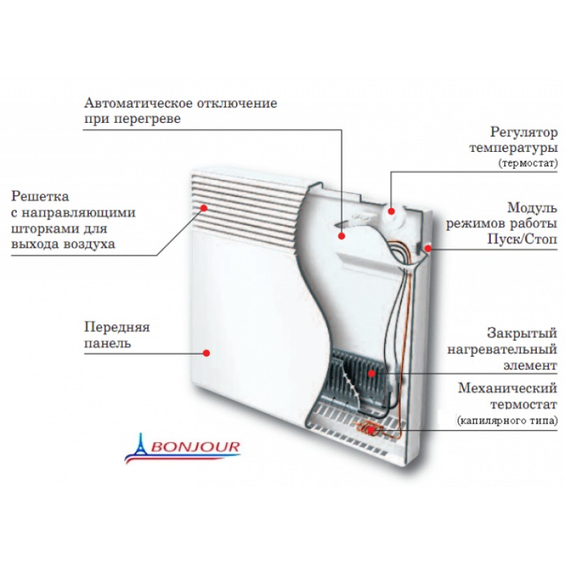 Встроенный датчик падения гарантирует выключение конвектора при падении