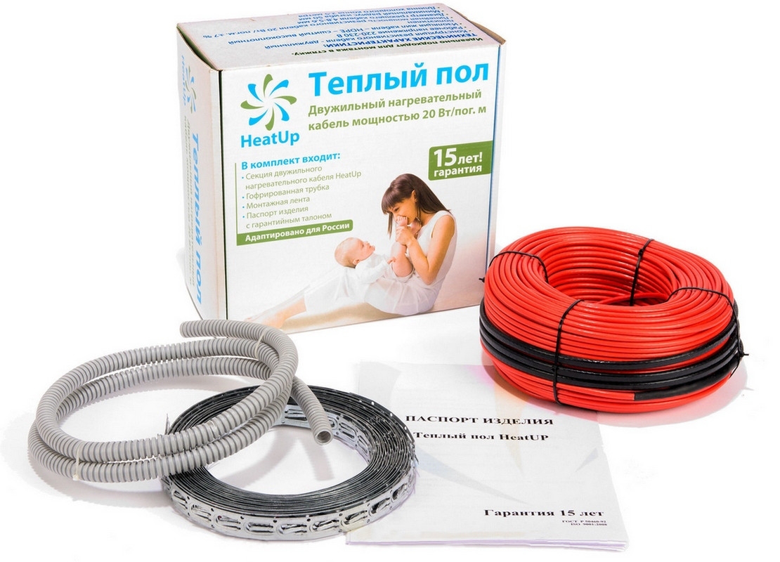 Нагревательные кабели Heat Up WFOH/D производятся в Малайзии. Конструкция нагревательных кабелей Heat Up обеспечивает возможность монтажа систем «теплый пол» как при наличии теплоизоляционного слоя (толщина стяжки при этом - от 30мм), так и при его отсутствии (с минимально возможным слоем стяжки). Также использование нагревательных кабелей Heat Up позволяет смонтировать теплый пол сложного профиля